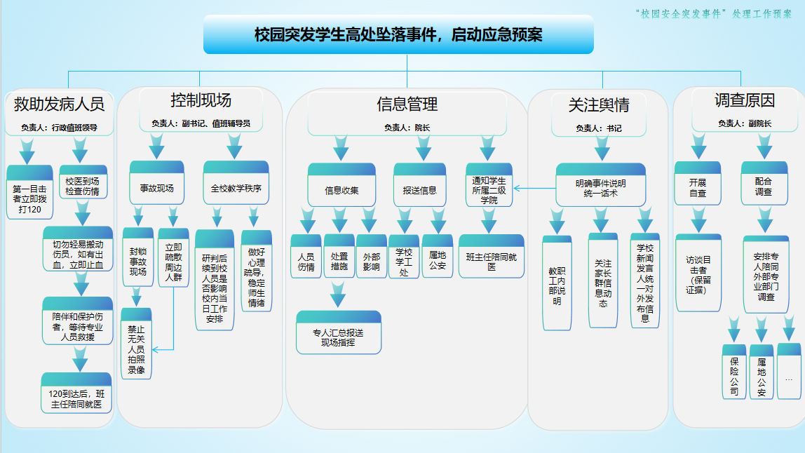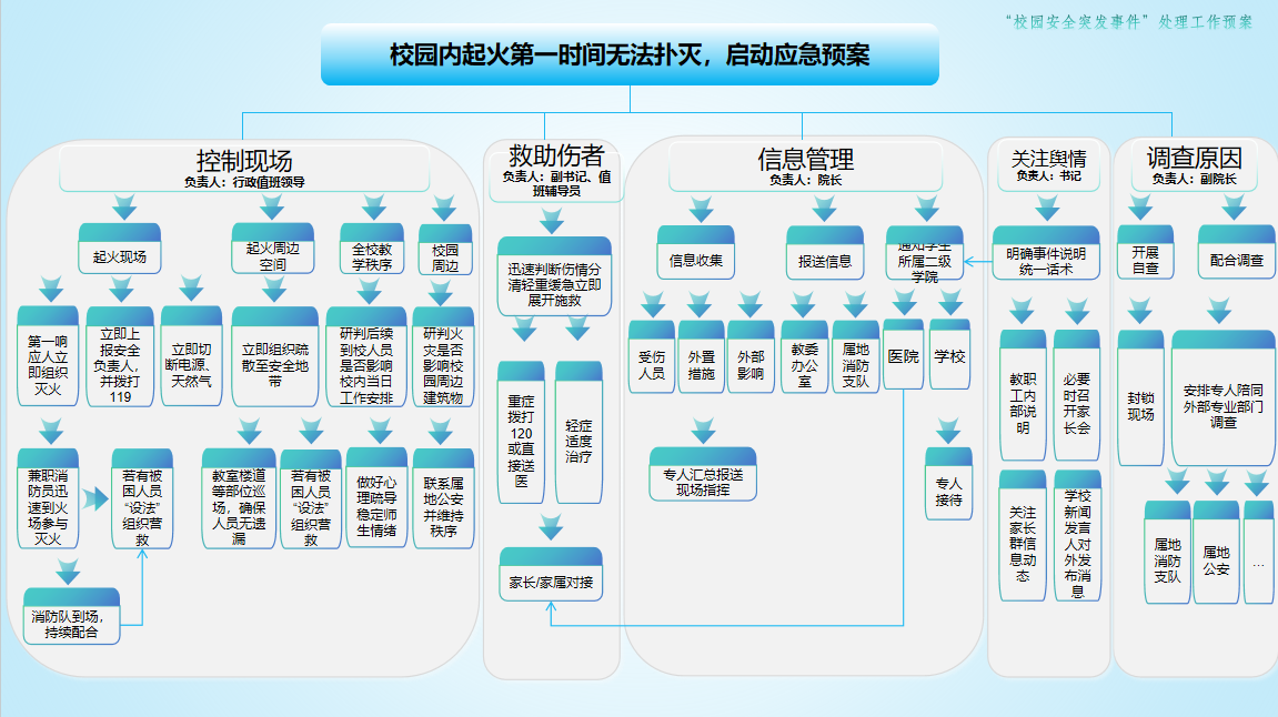 •发现重大安全隐患(如消防设施缺失等),立即上报产业学院党政领导,同步启动应急事件响应与处置预案(见第七章)。