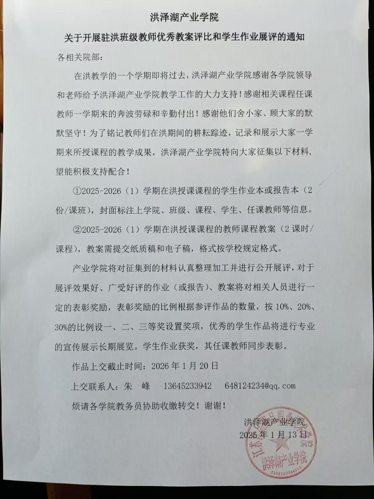 关于洪泽湖产业学院开展驻洪班级教师优秀教案评比和学生作业展评的通知.jpg