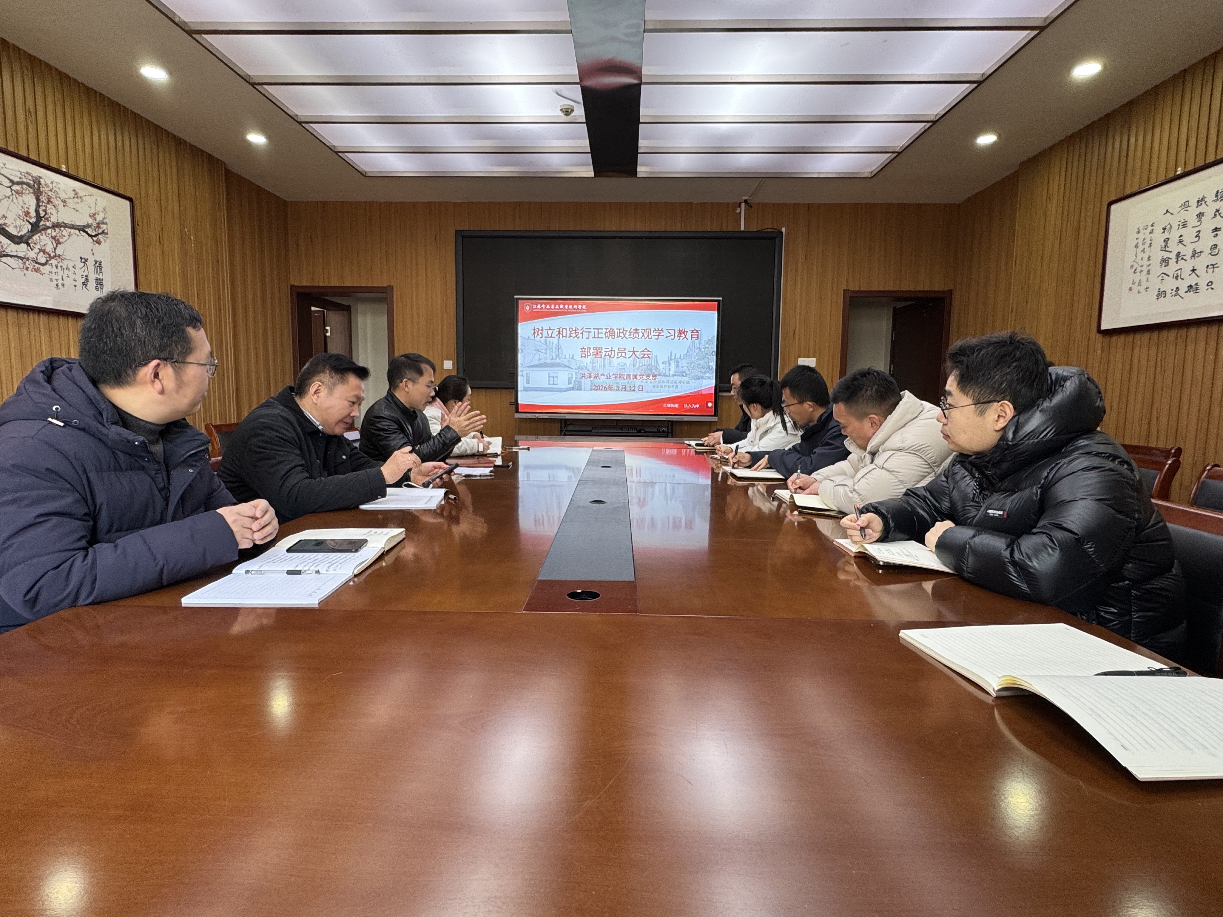 3月12日晚,洪泽湖产业学院直属党支部召开树立和践行正确政绩观学习教育启动会。会议由直属党支部书记杨建主持。